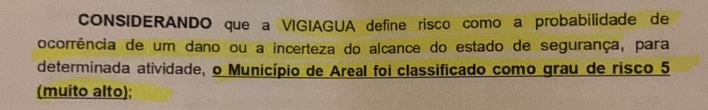Areal também sofre com a falta de transparência nos relatórios de qualidade da água. Desde o início de 2025, o último boletim público divulgado no site oficial da prefeitura não traz informações completas sobre análises físico-químicas e bacteriológicas, o que dificulta o acompanhamento pela população.